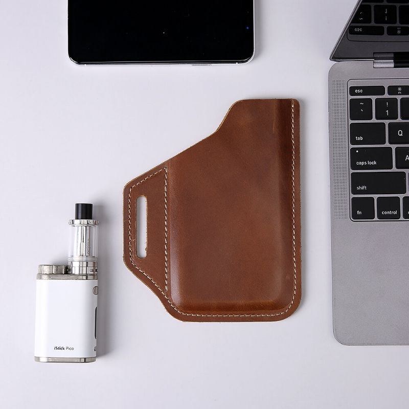 Ægte Læder Til Mænd Praktisk Ensfarvet 6.3 Tommer Telefontaske Pung Bæltetaske Taljetaske