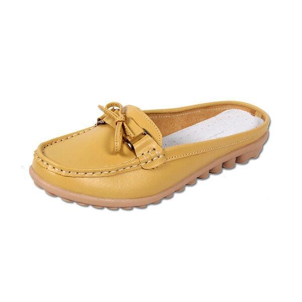 Dame Casual Blødt Læder Slip-ons Bowknot Chic Flat Loafers