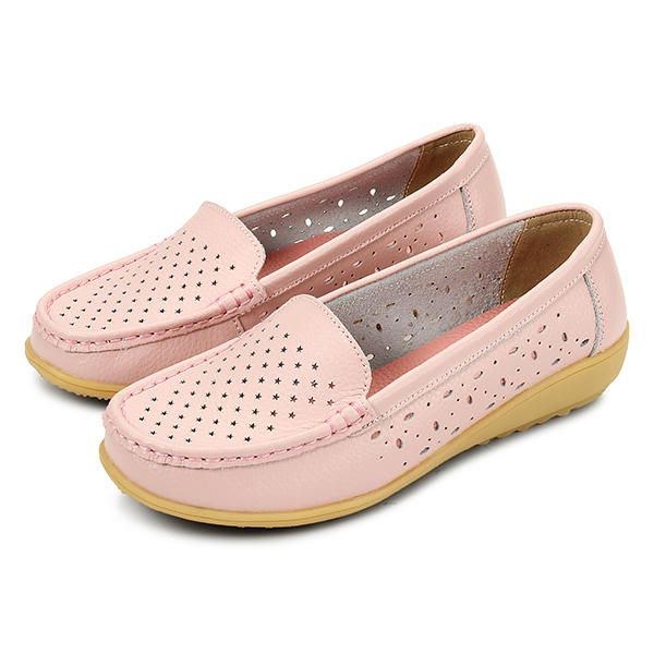 Dame Casual Hollow Out Blød Komfortabel Sommer Slip On Outdoor Flats Loafer Sko