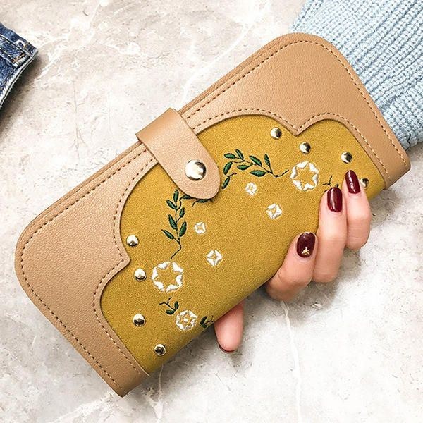 Dame Kedelig Polsk Pu Læder Blomstermønster Lang Tegnebog