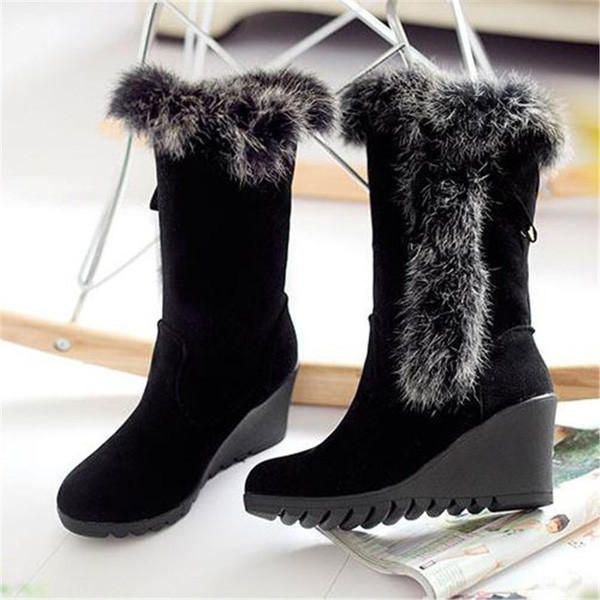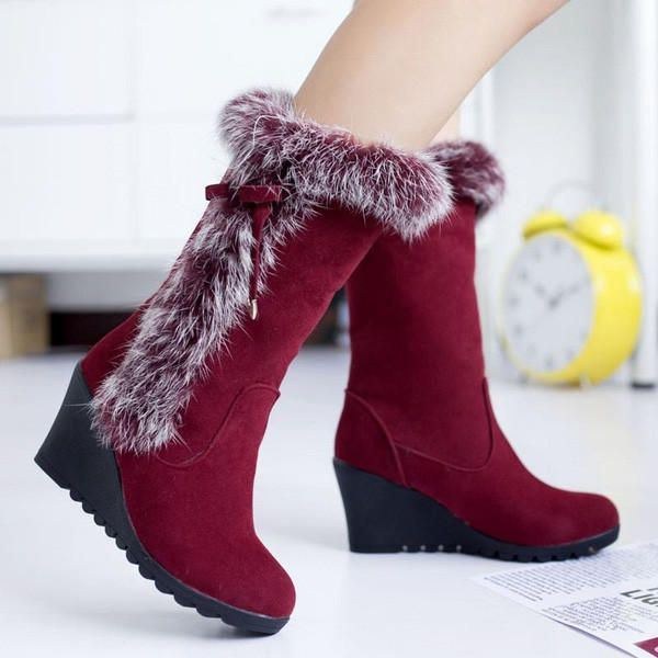 Dame Kunstig Pels Foring Trim Mid Calf Sne Kilehæl Snestøvler