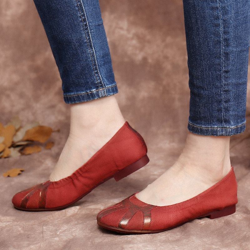 Dame Retro Comfy Blødt Lærredssplejsning Foldbare Slip On Ballet Flade Sko