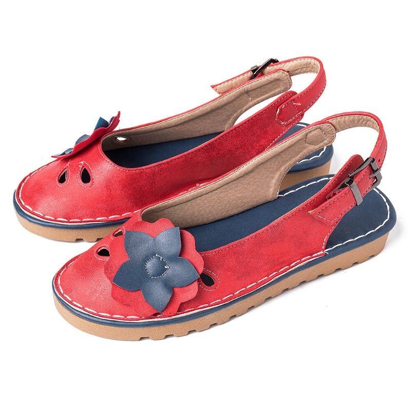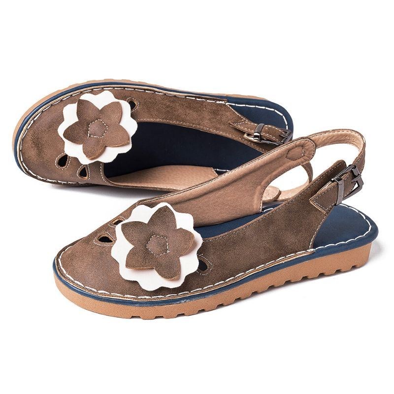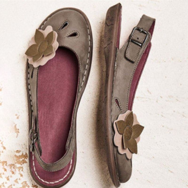 Dame Retro Flowers Decor Åndbar Casual Black Strap Slingback Flats