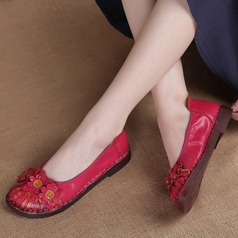 Dame Retro Flowers Decor Håndlavede Syninger Non Slp Soft Sole Loafers
