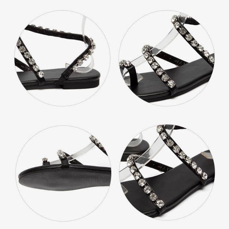 Dame Rhinestone Clip Toe Slip On Elastikbånd Casual Sommer Strandferie Flade Sandaler