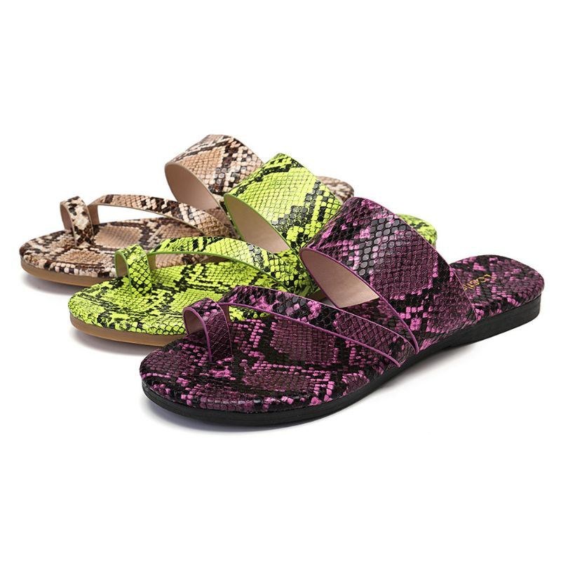 Dame Slangemønster Casual Comfy Toe Ring Flade Sandaler