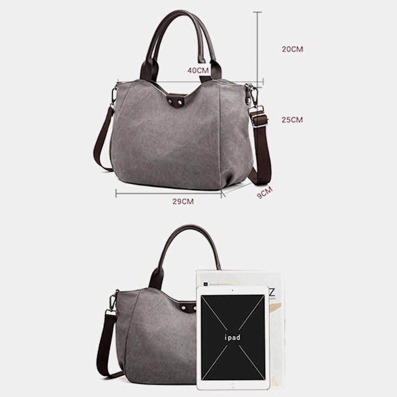 Dame Stor Kapacitet Lærred Håndtaske Skuldertaske