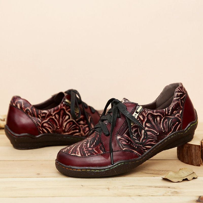 Håndlavet Læder Blomstersplejsningssøm Sidelynlås Flade Sko Med Snøre