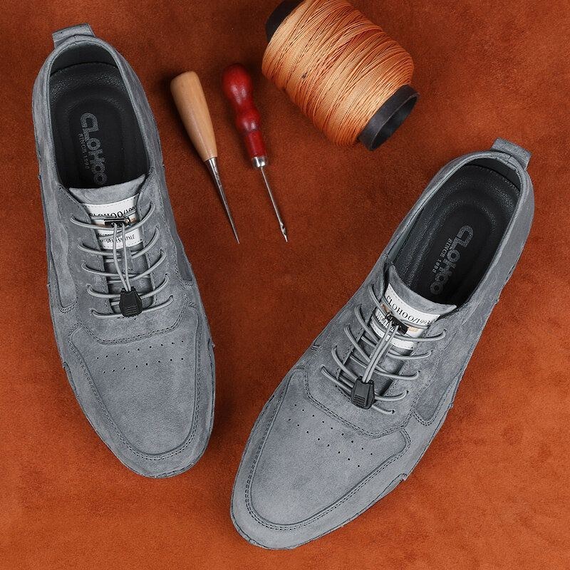 Herre Ægte Læder Åndbar Håndsyning Blød Bund Skridsikre Behagelige Fritidssko