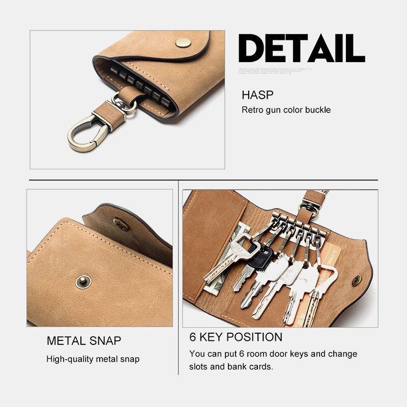 Herre Ægte Læder Multifunktion Snap Button Key Case Retro Casual Kortholder Pengeclips Tegnebøger