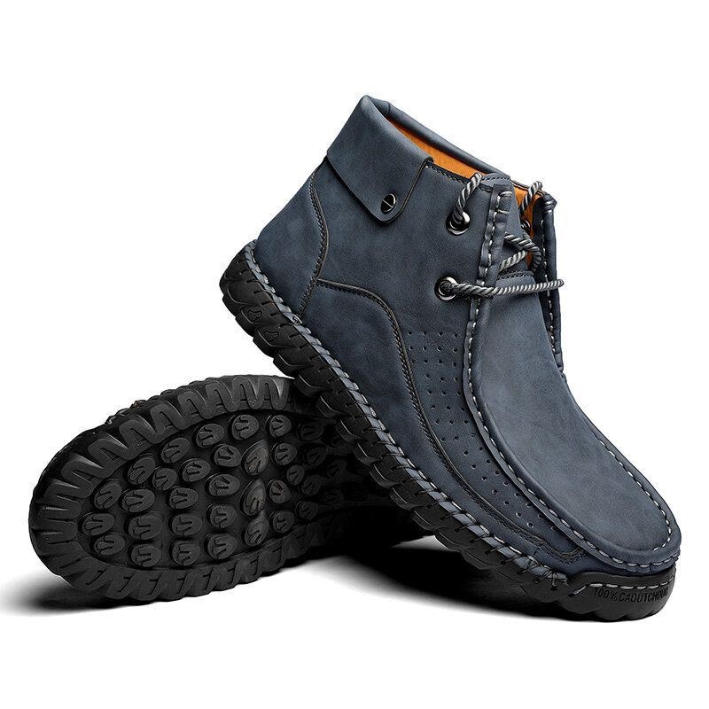 Herre Håndsyning Læder Skridsikre Ankelstøvler Med Snøre