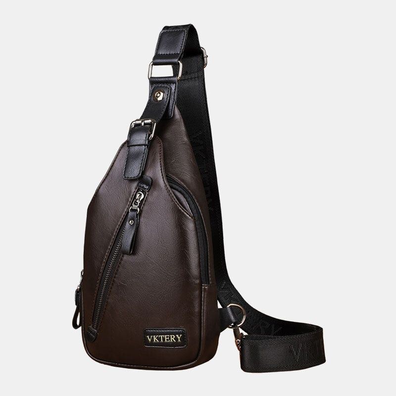 Herre Imiteret Læder Retro Forretningsrejse Brysttaske Crossbody Taske