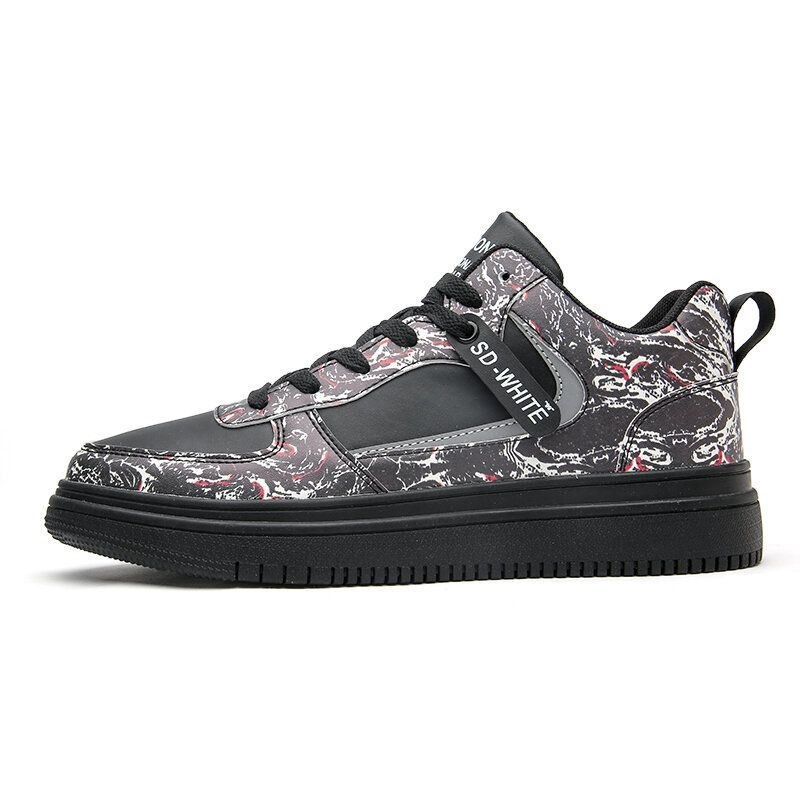 Herre Læder Åndbar Blød Sål Mønster Splejsning Snørebånd Casual Court Sko