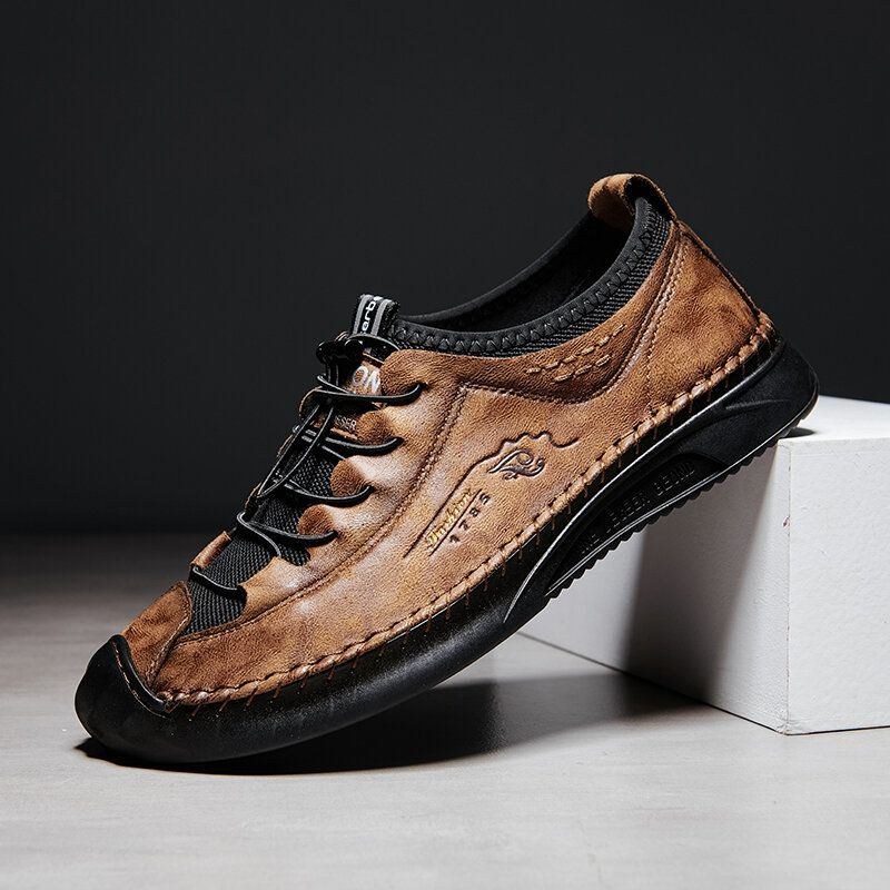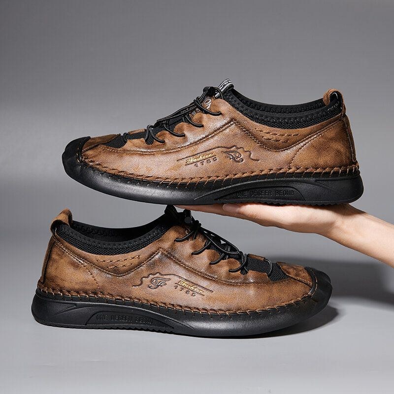 Herre Mikrofiber Åndbar Håndsyning Blød Sål Elastiske Snørebånd Casual Lædersko