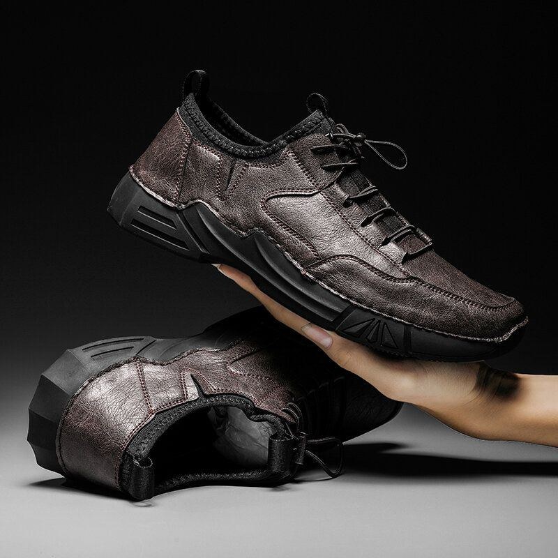 Herre Okselæder Åndbar Blød Sål Håndlavet Ren Farve Elastiske Snørebånd Casual Sko
