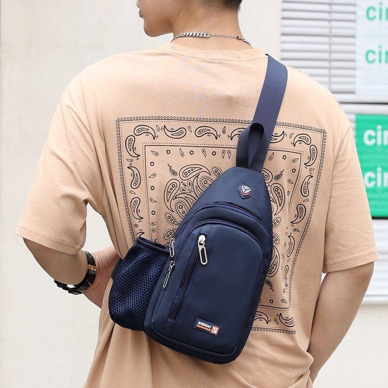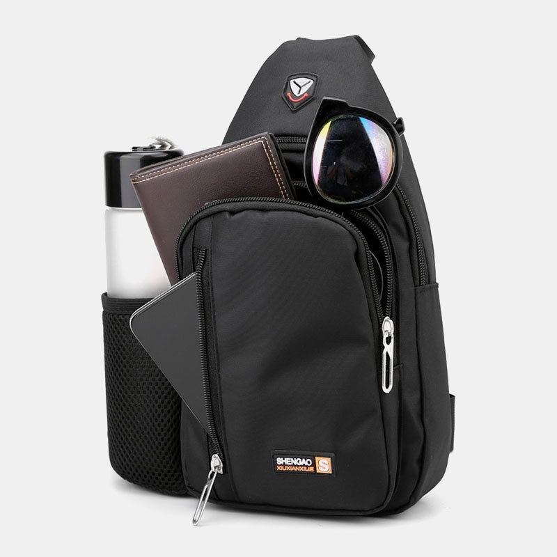 Herre Oxford Side Independent Water Cup Mesh Pocket Brysttaske Multi-lomme Vandtætte Crossbody Tasker Skuldertaske