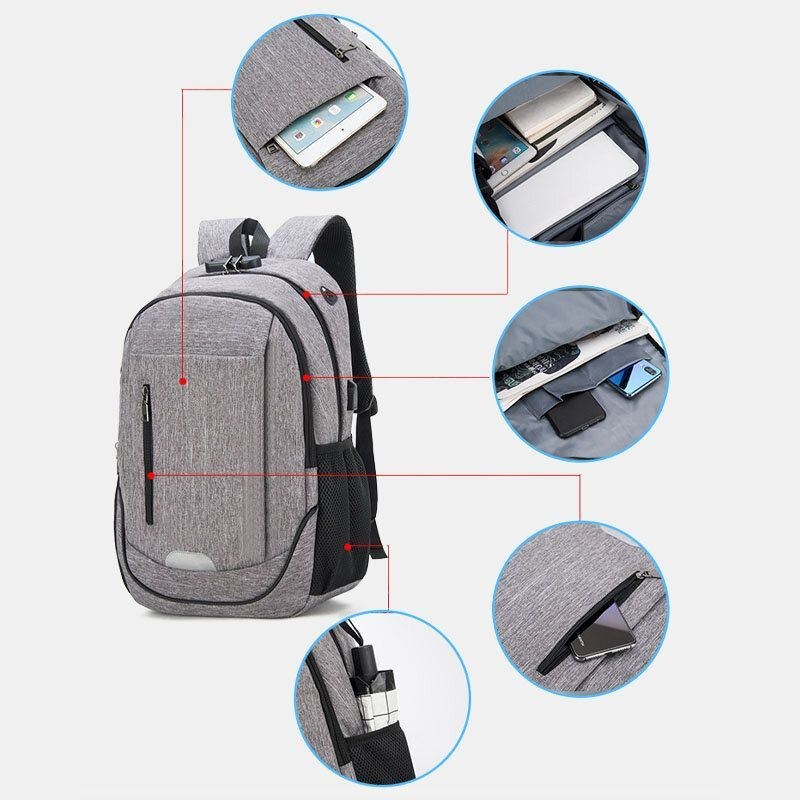 Herremode Med Stor Kapacitet Vandtæt Rygsæk Rejsetaske Skoletaske Med Usb-opladningsport