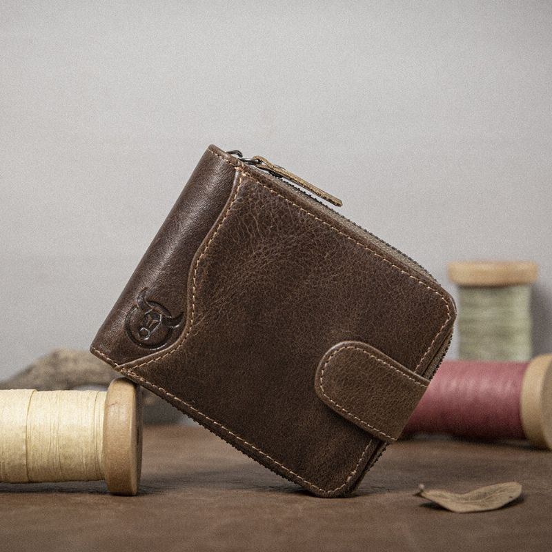 Møntpose Med Lynlås Til Mænd Med Kort Pung I Koskind Med 16 Kortpladser