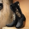 Retro Blomster Firkantet Toe Slip On Mid-calf Block Hæl Cowboystøvler Til Damer