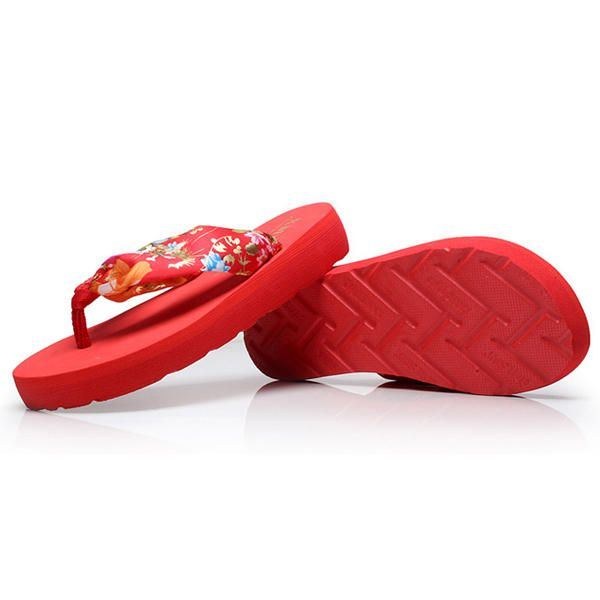 Stor Størrelse Sommer Dame Strandtøfler Bohemia Flip Flops Åndbare Silke Hjemmesko